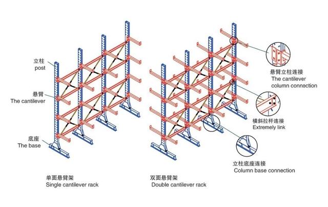 悬臂式货架布局轻盈、载沉能力好、并且空间操纵率高,并且库内根基都是以人工存取功课为从。